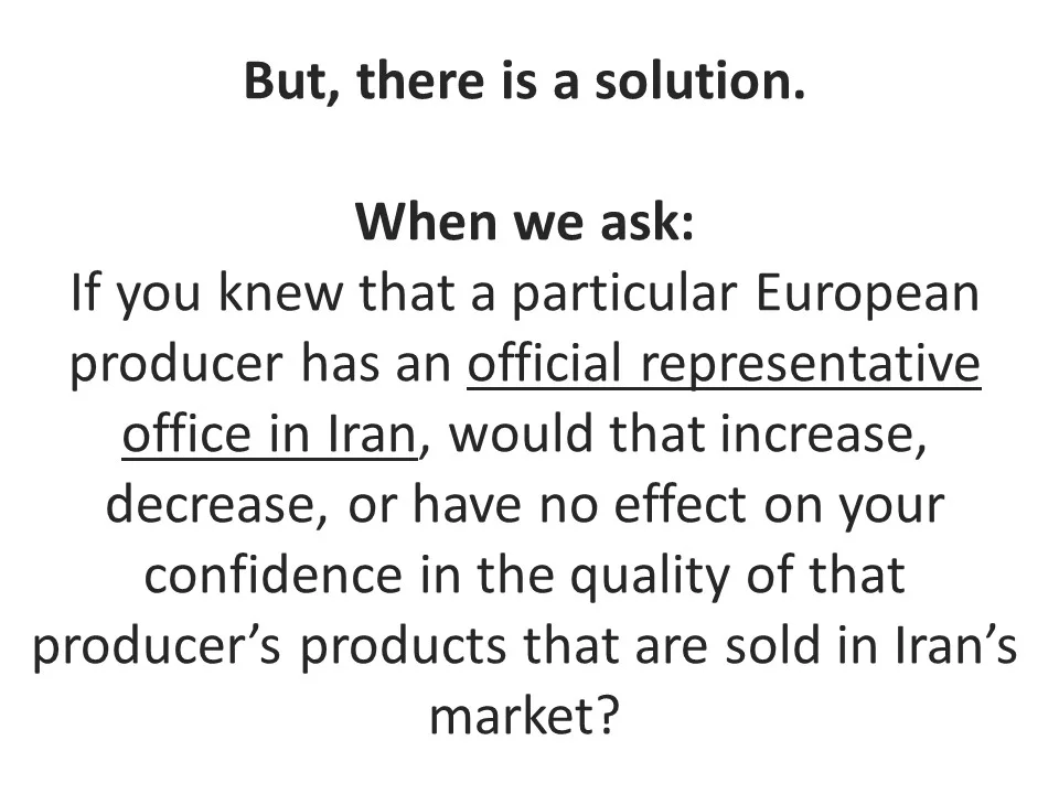 Another important challenge multinational companies face is a perception among Iranians that multinational companies do not take the interests of the Iranian people into account and are no well acquainted with the needs and tastes of the Iranian people. To overcome this challenge, multinational companies need to consider and study the needs and tastes of their Iranian consumers.
